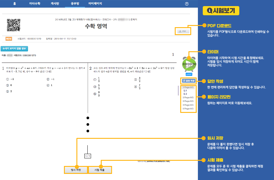 마타수학은 해킹이나 컴퓨터 바이러스 등에 의한 개인정보 유출 및 훼손을 막기 위하여 보안프로그램을 설치하고 주기적인 갱신 및 점검을 하며 외부로부터 접근이 통제된 구역에 시스템을 설치하고 기술적/물리적으로 감시 및 차단하고 있습니다.